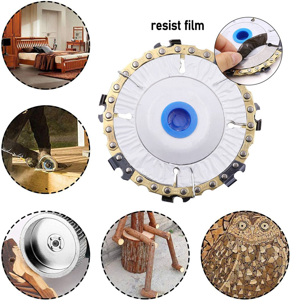 Disco de sierra de cadena para tallado de madera amoladora, rueda de amoladora de motosierra, moldeador de dientes de sierra doble antirretroceso, corte, hoja de cadena moldeadora para amoladora angular 100/115, 22 dientes, eje de 5/8 '