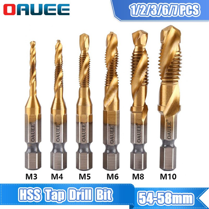6 piezas de rosca Titan (M3, M4, M5, M6, M8, M10 (brocas)), están fabricadas en acero HSS y tienen un vástago hexagonal.