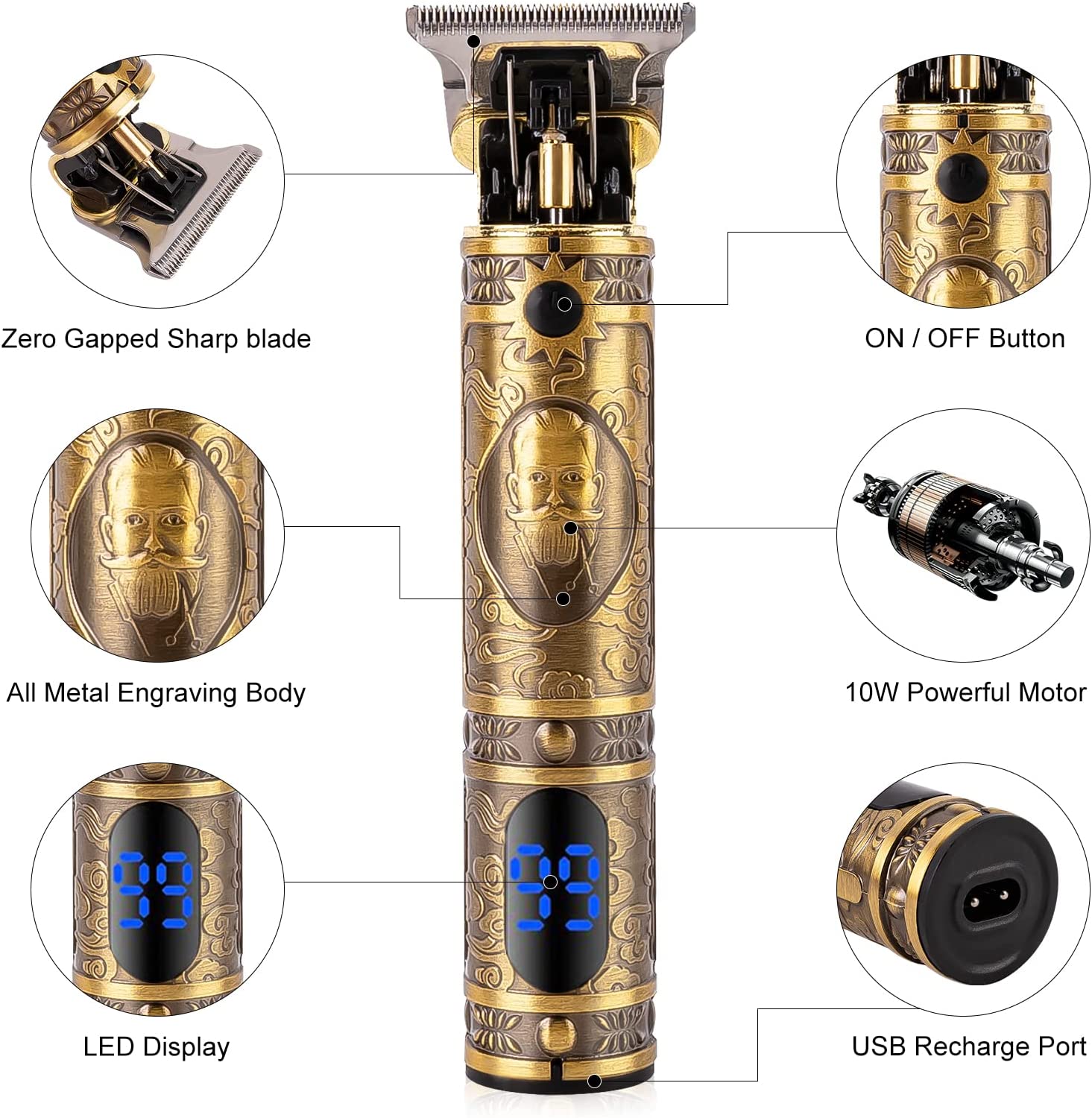 ✅ La cortadora de pelo está equipada con un potente motor y una hoja de acero inoxidable de precisión auto afilada, permite un corte fácil y rápido sin atascarse en el cabello. Las hojas en forma de T te permite diseñar fácilmente tu peinado y dar forma a los bordes.