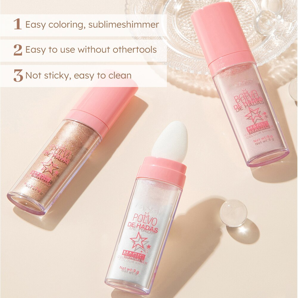 🧚‍♀️ El polvo de hadas es un producto indispensable si te gusta el brillo. Su aplicador es en forma de ‘lenguita’ y no necesitas hacer mucha fuerza o presión para que salga el producto.